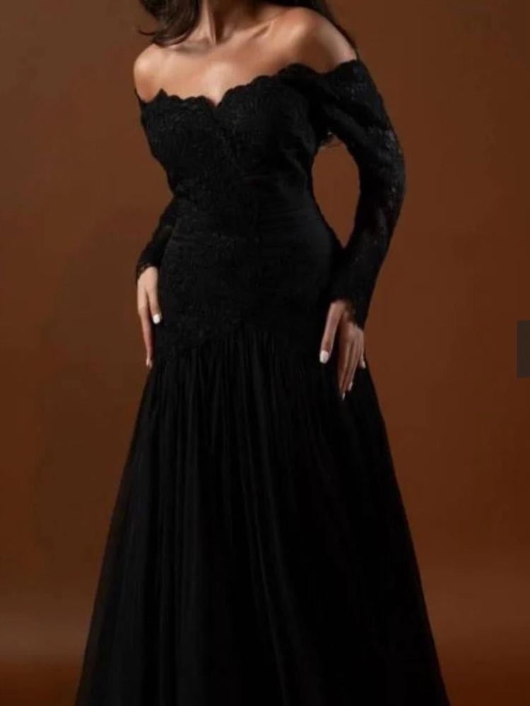 فستان أسود أنيق بأكتاف مكشوفة ودانتيل ناعم.. لإطلالة تخطف الأنظار